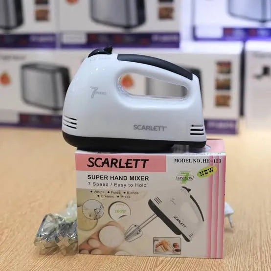 The Scarlet 7-Speed Electric Hand Beater is a convenient and easy-to-use mixer designed for everyday baking and cooking. With multiple speed settings and comfortable handling, it’s perfect for whipping cream, beating eggs, mixing batter, and more.