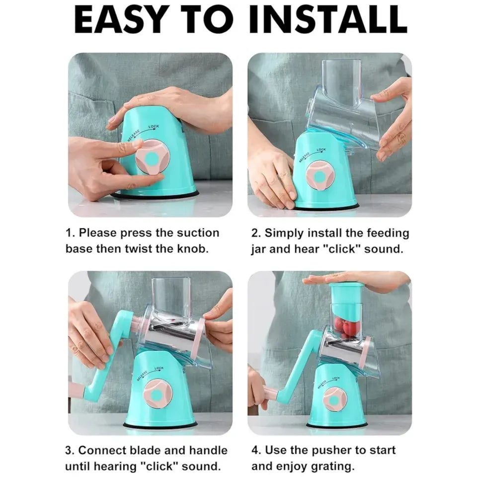 Easily grate and slice cheese, vegetables, and more with this Tabletop Drum Grater & Slicer. Its rotary drum design makes kitchen prep fast, safe, and convenient. Durable and easy to clean, perfect for everyday use.